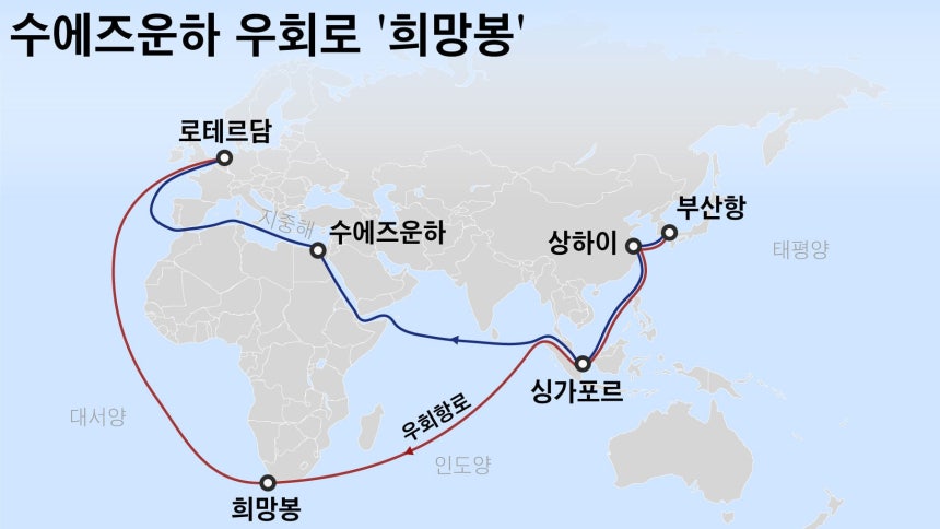 아시아~유럽 노선은 통상 36~39일을 운항한다. 희망봉으로 우회하면 운항 일수가 최대 44~49일로 늘어난다. 그만큼 컨테이너선이 나를 수 있는 화물이 줄어드는 셈인데, 업계에서는 톤마일이 약 11%가량 늘어나는 효과가 있다고 분석하고 있다.