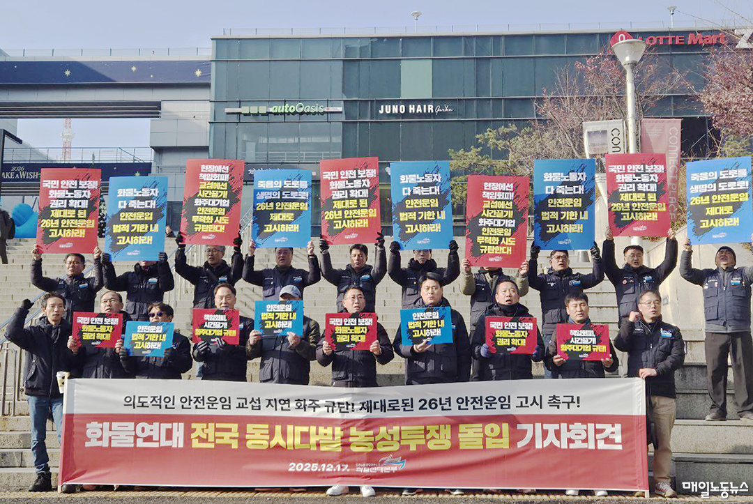 김동국 화물연대본부 위원장은 “대통령이 안전운임제 일몰 폐지와 확대 필요성을 분명히 했음에도 국토부는 사회적 합의를 사실상 파기했다”며 “화주들이 무엇을 믿고 교섭을 해태하고 있는지 이유가 분명히 드러났다”고 비판했다. 김 위원장은 “국토부가 끝내 책임 있는 태도를 보이지 않는다면 농성장은 항만을 멈추는 투쟁의 전진기지가 될 것”이라고 경고했다.